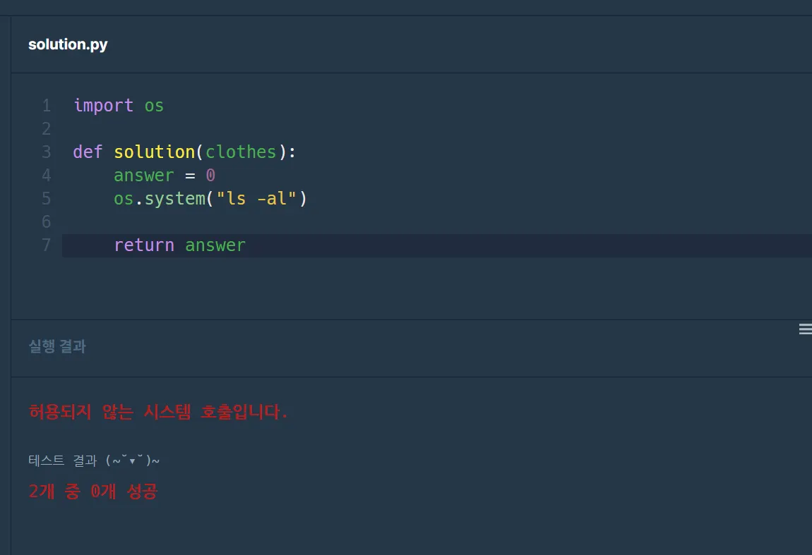 응시자의 코드에 허용되지 않는 system call이 있으면 커널이 SIGKILL로 프로세스를 종료